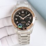 White-Gold Steel Bracelet + 50 DDD "Double 11" Surprises Galore! Longines proudly presents the new "Rose Gold Jasmine Ceramic Bezel" Pioneer Zuiu Time watch! DDD 1. 42mm diameter, the same size as on the official website! DDD 2. The bezel is adorned with a "green, gold, blue, and black" jasmine ceramic inlay, marking 24-hour scales and a Super-Luminova luminescent inverted triangle indicating the second time zone. DDD 3. The dial is also decorated with a winged hourglass pattern and five embossed stars. A date window is located at 6 o'clock. DDD 4. The sapphire crystal is slightly domed, with anti-reflective coating on both the inner and outer surfaces, and rotates smoothly and precisely in both directions. This watch features an easy-grip screw-down crown for adjustment, while the sealed case back is secured by six screws, providing excellent water resistance to 100 meters. The DDD 5 features a stainless steel bracelet or a brown, yellow, or blue Italian calfskin strap with a safety clasp; it is exquisitely crafted, comfortable, and robust. The DDD 6 is equipped with a modified Hangzhou 2836 movement, now a genuine L844.4 automatic movement, offering a 48-hour power reserve and is certified by the Swiss Official Chronometer Testing Institute (COSO).
