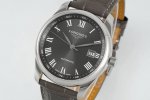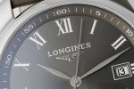 The dial, with its classic "silver barley grain" pattern, features three large hands and painted Arabic numerals. The Longines logo is at 12 o'clock, and the date display and striking blued steel hands at 3 o'clock bear witness to Longines' extraordinary heritage and watchmaking expertise.