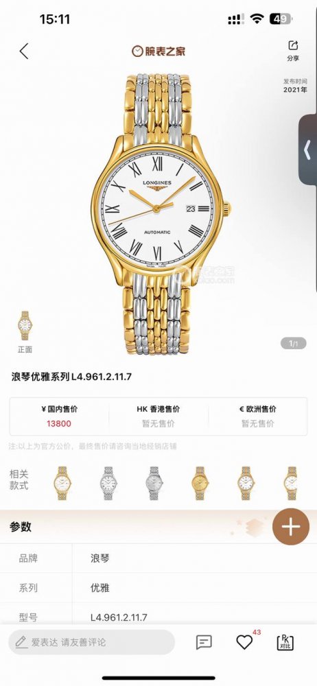 Longines Lyre L4.960, a top-tier replica watch, unique to each model, guaranteed to last three years. Accessories compatible with the original! Brand: Longines, Series: Lyre L4.960.4, Movement: Haiou Optional, Material: 316 Stainless Steel, Diameter: 38.5mm, Strap: Original, Water-Resistant: 50m, Clasp: Original, Glass: Sapphire Crystal.