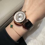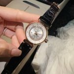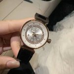 Louis Vuitton, sapphire crystal, Swiss-made movement. The Monogram flower on the dial is not merely a simple decorative pattern, but an essential element of this timepiece. The petals are set with diamonds, and the perfect interplay of curves and diamonds creates a lifelike three-dimensional effect, as if swaying and dancing in the light. The interplay of curves, the raised and recessed lines, the Monogram flower pattern, and the sparkling diamonds make this ladies' watch the perfect accessory for the discerning woman's everyday life.
