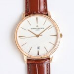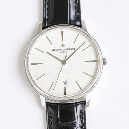 Vacheron Constantin Platinum: New 270th Anniversary Limited Edition Vacheron Constantin Patrimony Collection, Model 85180! The case measures 40mm x 9mm, a perfectly round shape with slightly curved lugs for a more comfortable fit on the wearer's wrist. Each case undergoes rigorous quality control by MK to ensure a unique and refined look. The movement is a modified 9015 movement, now modified to resemble the Vacheron Constantin in-house 2450 movement. From the bridges to the steel wheels, all components are meticulously decorated by MK watchmakers, and the automatic rotor is plated with 18K rose gold, maximizing the original's exquisite craftsmanship. The