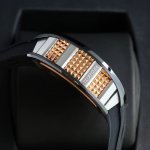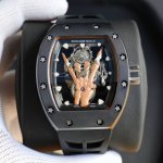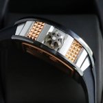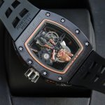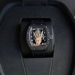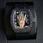 2630 Latest Hot-Selling Mechanical Richard Mille RM66 Watch. The latest skeletonized dial incorporates metal hand gestures known as "devil horns," symbolizing family and inclusiveness while also carrying a hint of rebellion. The bezel and case back are made of carbon fiber, and the sides of the case are decorated with rose gold Clous de Paris patterns. It comes with imported rubber straps in black, white, red, and orange, offering a unique design that resonates with music. DDD