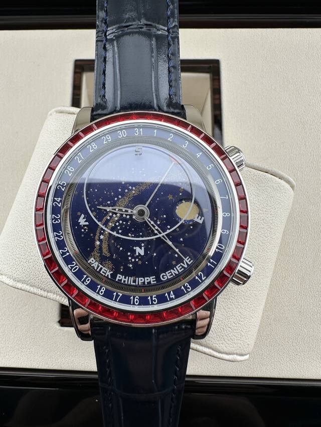 3K Factory's 2025 Pinnacle Creation - 6104G: A Top-Tier Masterpiece from the Geneva Sky Series! DDD When the starry sky becomes a landscape on your wrist, 3K Factory has spent two years meticulously crafting this masterpiece, pushing the aesthetics of super-complex functions to their limits! The clockwise date direction is now perfectly aligned with the official design, and the celestial function is near perfection. The dial features a realistic Geneva Sky map, paired with an original enamel white moon phase display that automatically reflects the moon's phases, making every wrist movement a dialogue with the stars. DDD Powered by a modified A.240 movement based on the original imported Miyota automatic mechanical movement, paired with an original 18K gold automatic hammer, ensuring precise and stable timekeeping with performance comparable to other watches. The bezel is set with 45 dazzling gemstones, and the buckle is adorned with 28 rare crystals, showcasing luxurious texture in the interplay of light and shadow. The slightly domed anti-reflective crystal provides a three-dimensional and transparent refraction effect, allowing clear visibility of dial details and elevating the overall quality. DDD 3K products are guaranteed to be exquisite! Using the finest craftsmanship to recreate the essence of high-end watches, we invite all watch enthusiasts to appreciate the extraordinary charm of a starry night on your wrist! DDD