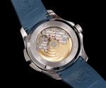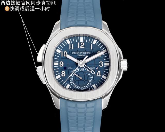 6710, the first watch with perfect matching functions, is a top-tier sports timepiece that combines innovative technology, practical functions, and unique design. It features a 40.8mm diameter, stainless steel case with alternating polished and brushed finishes for a strong sense of depth. The strap is made of fluoroelastomer with a comfortable technical material on the back; this strap is exceptionally soft, durable, and conforms well to the wrist. The soul of this "Grenade" watch lies not in its simple T-hand, but in its patented dual time zone mechanism, which is extremely elegant and convenient to operate. Two hidden buttons on the left side of the case are used for quick-set hour hand and dual time zone functionality, achieving perfect matching. There are small windows on the left and right sides of the dial, displaying the day/night status for Local and Home respectively. Powered by the Caliber324S S Fus automatic movement, featuring a Gyromax balance wheel and Spromax hairspring, it ensures extremely high accuracy every day. This is the first watch with perfect matching functions, meticulously crafted by the factory. We welcome all watch enthusiasts to appreciate it.