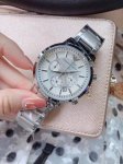 A Mani's own brand new six-hand chronograph movement has arrived. It features a steel bracelet and a white case and dial.