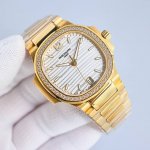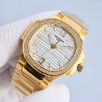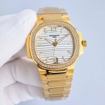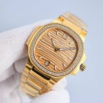 A masterpiece of dazzling diamonds, the top-tier new exclusive "flashy green" Nautilus women's watch 7118 is here! Welcome to compare details: 1. Equipped with a custom-modified 9015 movement (Cal.324Sc automatic), 45-hour power reserve, 28,800 vibrations per hour. 2. Custom-made leather strap! 3. Watch size 35.2mm, identical to the original! 4. Set with 56 crystal diamonds, matching the original number. 5. Double-sided anti-reflective sapphire crystal glass. 6. Dial color is consistent with the original. "No one can own it, but only looks after it for the next generation." Elegant and sophisticated, perfectly embodying the fashion taste of the working woman, exuding both elegance and powerful confidence. A masterpiece of craftsmanship, welcome to appreciate!