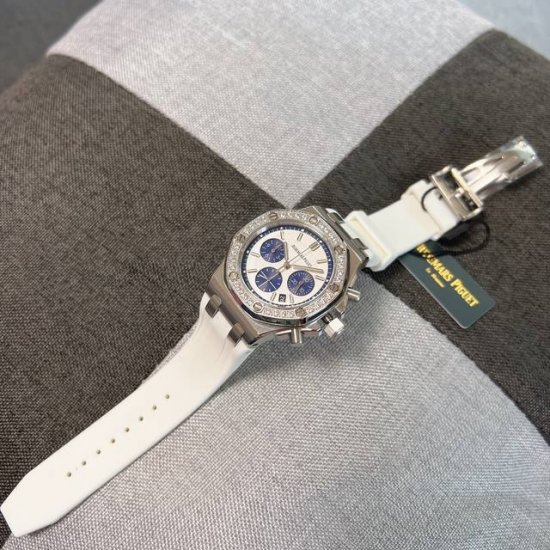 A Royal Oak series watch, almost every beautiful woman owns one! Stainless steel case with diamond-set octagonal diamond bezel, imported Japanese multi-power quartz movement, stable chronograph function, scratch-resistant sapphire crystal, food-grade safe rubber strap, skin-friendly and versatile, 37mm size, suitable for any woman's wrist shape. A high-quality version from the Mf factory, worth owning.