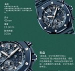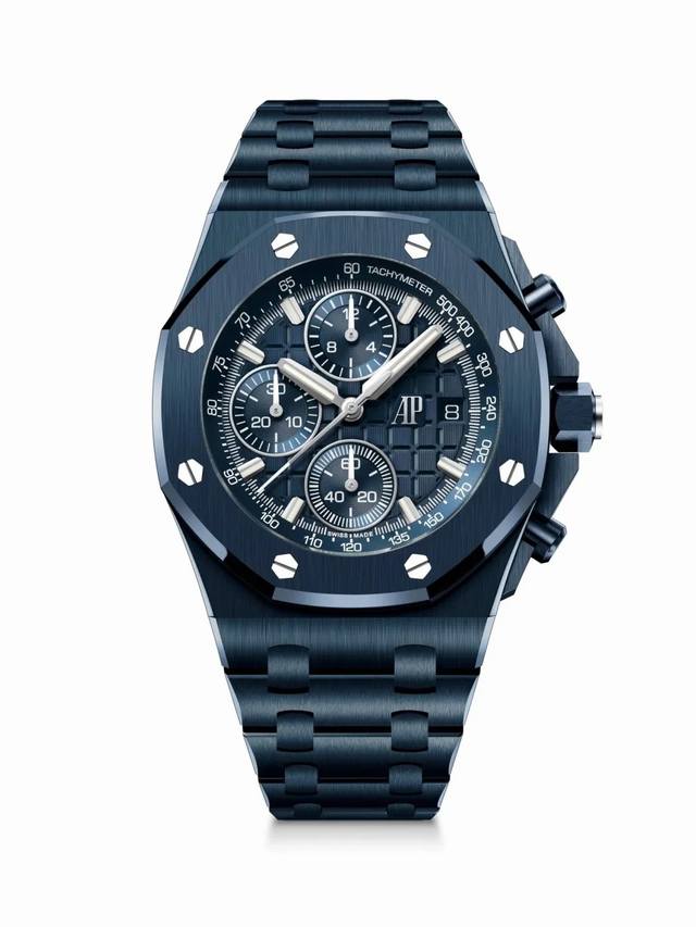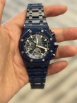 Apk has just released the new 2025 Audemars Piguet Royal Oak 26238Cd.Ce in two color options: Midnight Blue and Black. The popular 42mm case diameter exudes both grandeur and refinement. The dial features a "Mega Tapisserie" pattern, a classic Audemars Piguet element, and is complemented by three-sided luminous hands that glow in the dark for excellent legibility. It's powered by a Dandong chronograph 4404 automatic movement with a 0.5-hour vibration frequency. The case is made of double-sided sapphire crystal with high transparency and anti-reflective properties. The strap features a convenient clasp design. This model is also water-resistant, suitable for everyday handwashing, rain, and even swimming. The Audemars Piguet Royal Oak Offshore 26238Cd.Ce is a worthy addition to any collection. Welcome to appreciate its beauty .