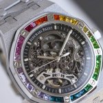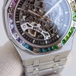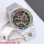 Audemars Piguet Rainbow New Arrival! New Audemars Piguet Rainbow 15412Bc DDD. Audemars Piguet DDD 15412Bc Frosted Gold Skeleton Rainbow DDD Men's Mechanical Watch, Calibre 3132 integrated movement, 41mm diameter, 9.9mm thickness. Dark gray dial shape: round. Dial material: skeletonized dial with rose gold luminescent applied hour markers and Royal Oak hands. Crystal material: anti-reflective sapphire crystal. Crown material: stainless steel, screw-down crown. Case back: transparent, anti-reflective sapphire crystal. DDD