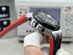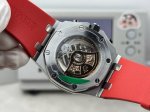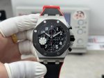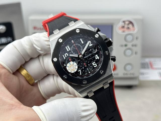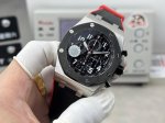 Audemars Piguet Royal Oak 26238 with rubber, leather, and steel straps. Featuring a small seconds sub-seconds at 12 o'clock, this popular 42mm case exudes both grandeur and sophistication. The dial boasts a "Mega Tapisserie" pattern, a classic Audemars Piguet design element, complemented by three-sided brushed luminous hands for excellent legibility in the dark. Powered by the Dandong chronograph 3126 automatic movement with a 0.5-hour vibration frequency, the watch features a double-sided sapphire crystal with high transparency and anti-reflective properties. The case is finished with CNC brushing, showcasing meticulous attention to detail. All hexagonal screws on the bezel are on the same plane. The watch is available with either a rubber or steel strap. Water resistant enough for everyday handwashing, rain, and even swimming, this Audemars Piguet Royal Oak Offshore 26238 is a worthy addition to any collection. Welcome to experience it!