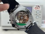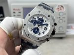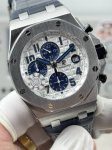 Audemars Piguet Royal Oak 26238 with rubber, leather, and steel straps. Featuring a small seconds sub-seconds at 12 o'clock, this popular 42mm case exudes both grandeur and sophistication. The dial boasts a "Mega Tapisserie" pattern, a classic Audemars Piguet design element, complemented by three-sided brushed luminous hands for excellent legibility in the dark. Powered by the Dandong chronograph 3126 automatic movement with a 0.5-hour vibration frequency, the watch features a double-sided sapphire crystal with high transparency and anti-reflective properties. The case is finished with CNC brushing, showcasing meticulous attention to detail. All hexagonal screws on the bezel are on the same plane. The watch is available with either a rubber or steel strap. Water resistant enough for everyday handwashing, rain, and even swimming, this Audemars Piguet Royal Oak Offshore 26238 is a worthy addition to any collection. Welcome to experience it!