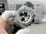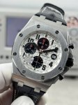 Audemars Piguet Royal Oak 26238 with rubber, leather, and steel straps. Featuring a small seconds sub-seconds at 12 o'clock, this popular 42mm case exudes both grandeur and sophistication. The dial boasts a "Mega Tapisserie" pattern, a classic Audemars Piguet design element, complemented by three-sided brushed luminous hands for excellent legibility in the dark. Powered by the Dandong chronograph 3126 automatic movement with a 0.5-hour vibration frequency, the watch features a double-sided sapphire crystal with high transparency and anti-reflective properties. The case is finished with CNC brushing, showcasing meticulous attention to detail. All hexagonal screws on the bezel are on the same plane. The watch is available with either a rubber or steel strap. Water resistant enough for everyday handwashing, rain, and even swimming, this Audemars Piguet Royal Oak Offshore 26238 is a worthy addition to any collection. Welcome to experience it!