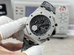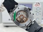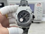 Audemars Piguet Royal Oak 26238 with rubber, leather, and steel straps. Featuring a small seconds sub-seconds at 12 o'clock, this popular 42mm case exudes both grandeur and sophistication. The dial boasts a "Mega Tapisserie" pattern, a classic Audemars Piguet design element, complemented by three-sided brushed luminous hands for excellent legibility in the dark. Powered by the Dandong chronograph 3126 automatic movement with a 0.5-hour vibration frequency, the watch features a double-sided sapphire crystal with high transparency and anti-reflective properties. The case is finished with CNC brushing , showcasing meticulous attention to detail. All hexagonal screws on the bezel are on the same plane. The watch is available with either a rubber or steel strap. Water resistant enough for everyday handwashing, rain, and even swimming, this Audemars Piguet Royal Oak Offshore 26238 is a worthy addition to any collection. Welcome to experience it!