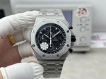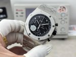 Audemars Piguet Royal Oak 26238 with rubber, leather, and steel straps. Featuring a small seconds sub-seconds at 12 o'clock, this popular 42mm case exudes both grandeur and sophistication. The dial boasts a "Mega Tapisserie" pattern, a classic Audemars Piguet design element, complemented by three-sided brushed luminous hands for excellent legibility in the dark. Powered by the Dandong chronograph 3126 automatic movement with a 0.5-hour vibration frequency, the watch features a double-sided sapphire crystal with high transparency and anti-reflective properties. The case is finished with CNC brushing, showcasing meticulous attention to detail. All hexagonal screws on the bezel are on the same plane. The watch is available with either a rubber or steel strap. Water resistant enough for everyday handwashing, rain, and even swimming, this Audemars Piguet Royal Oak Offshore 26238 is a worthy addition to any collection. Welcome to experience it!