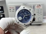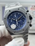Audemars Piguet Royal Oak 26238 with rubber, leather, and steel straps. Featuring a small seconds sub-seconds at 12 o'clock, this popular 42mm case exudes both grandeur and sophistication. The dial boasts a "Mega Tapisserie" pattern, a classic Audemars Piguet design element, complemented by three-sided brushed luminous hands for excellent legibility in the dark. Powered by the Dandong chronograph 3126 automatic movement with a 0.5-hour vibration frequency, the watch features a double-sided sapphire crystal with high transparency and anti-reflective properties. The case is finished with CNC brushing, showcasing meticulous attention to detail. All hexagonal screws on the bezel are on the same plane. The watch is available with either a rubber or steel strap. Water resistant enough for everyday handwashing, rain, and even swimming, this Audemars Piguet Royal Oak Offshore 26238 is a worthy addition to any collection. Welcome to experience it!