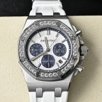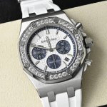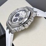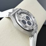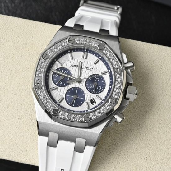 Audemars Piguet Royal Oak Offshore latest upgraded version! The same genuine diamond watch worn by Wang Ziwen! One of the most popular Audemars Piguet ladies' watches right now! Completely redesigned and upgraded with every detail faithful to the original. The case is made of 904L stainless steel and set with 32 2.0 brilliant-cut VVS diamonds totaling approximately 1.02 carats. It comes with a certificate from the authoritative Chinese testing institution GTC, one certificate, one watch, one code, supporting re-inspection! The watch tag, card, and case back all have the same three codes; scanning the QR code allows you to access the official website to check the corresponding watch model! AP - Audemars Piguet Royal Oak Offshore series. The watch size is 37mm, and the thickness is 12.4mm, both identical to the original! The dial is decorated with Lady Tapisserie patterns, presenting a stronger visual impact. Bringing extraordinary visual enjoyment, the 37mm design caters to the modern pursuit of large-diameter women's watches, creating a more heroic side for women. It shines brightly with a rich texture. The strap is made of white liquid silicone, an EU-certified environmentally friendly material; it can be easily cleaned with water or wiped with a damp paper towel. The six-hand quartz movement ensures precise timekeeping with zero error. Truly after-sales service! The scratch-resistant sapphire crystal provides clear and easy reading, and the octagonal case design showcases a unique and vibrant style! A true classic among women's watches.