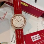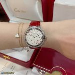 Ballon Bleu De Series Qixi Festival Special Edition, same as in boutiques. The dazzling dial features a combination of diamond, pink, and sapphire colors, embellished with sparkling embossing for a refined and elegant interpretation of the brand's classic design. It boasts a Swiss quartz movement, 36mm in diameter, and is finished in a stunning red alligator-patterned leather with bamboo-joint calfskin. A truly beautiful watch from