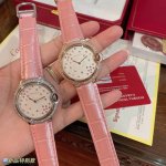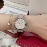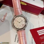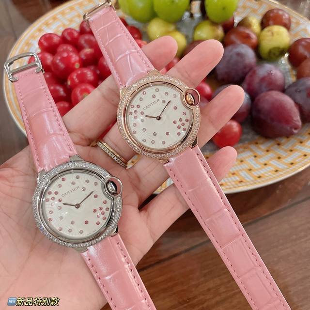 Ballon Bleu De Series Qixi Festival Special Edition, same as in boutiques. The dazzling dial features a combination of diamonds, pink, and sapphire, embellished with sparkling embossing for a refined and feminine style that uniquely interprets the brand's classic design. It boasts a Swiss quartz movement, 36mm in diameter, and a lovely pink bamboo calfskin leather strap. A truly beautiful watch!