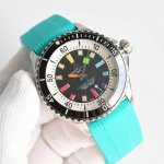 Bls Breitling Superocean 42mm watch. DDD 1: A dive watch must be both easy to read and convenient to operate. The maximum luminous coating on the hour markers and hands ensures clear readability in the dim light of the deep sea, like a small light bulb in the dark; convenience is achieved through a knurled ceramic bezel, a micro-zip folding clasp, and a precise mechanical movement paired with a scratch-resistant double-spherical sapphire crystal. 2. Geometric hands, clear and stylish. The hands of this watch showcase geometric charm to the fullest, a novel and harmonious combination that not only ensures clear readability but also leaves a lasting impression. 3. Listen to the sound, easy to operate. Those who appreciate mechanical watches are often captivated by the sound of winding and rotating the bezel. Listening to that distinct rhythm, one can more clearly feel the smooth operation of each component. The unidirectional rotating bezel and screw-down crown are meticulously crafted, allowing even those with long fingernails to operate them easily, and each interaction with the watch produces a crisp, pleasant mechanical sound. 4: Numerous choices, bold experimentation is encouraged. The Superocean series features a pure color scheme and attention to detail in its dial logo, bezel markings, and hour markers to highlight the vibrant dial colors. The multi-colored ceramic bezel paired with the colorful dial offers even more diverse options! Recommended Men's Mechanical Watch DDD Buy Now DDD