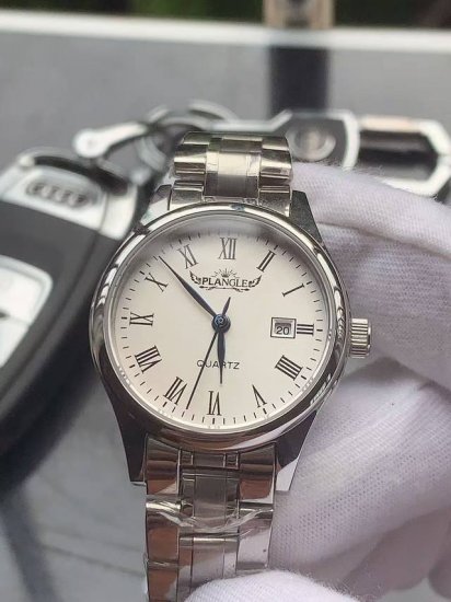 Brand: Plange - Elegant Ladies' Watch, featuring a simple three-hand design with a single date display at the 3 o'clock position, a 316L stainless steel case, a high-grade Swiss quartz movement, dimensions: 30mm thick, top-grade 316L stainless steel bracelet, and an original push-button clasp.