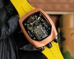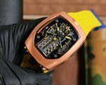 Bugatti Veyron collaborates with Jacob & Co. to launch the Tourbi Llon watch. The watch measures 54 x 44 x 20 mm, identical to the original. Composed of 578 parts, it boasts an explosive mechanical feel. Exquisite details include a built-in 16-cylinder engine, and the design is inspired by Bugatti's Chiron supercar. The biggest selling point is its horseshoe shape and Bugatti logo. Most surprisingly, through the curved sapphire crystal, you can see a 16-cylinder engine