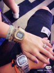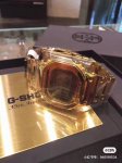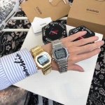 Casio 35th Anniversary Limited Edition Retro Metal Watch for Men, Gmw-B5000D-1-B5000Gd-9, also known as the "Gold Brick" in white gold and black plastic sealing. A watch recommended daily by WatchHome, showcased alongside the Submariner.