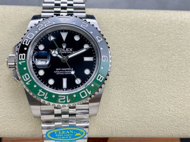 Clean Factory GMT-Master II Sprite 3285 Movement 72-Hour Power Reserve 126710, 126720 DDD Clean Factory has brought back the 3285 movement with a 72-hour power reserve from Dandong, an iteration of the previous generation 3186 movement. From the date display to the case and strap, the GMT model has undergone continuous refinement, and this time, with exclusive distribution of the 3285 from Dandong, we hope to bring more surprises. DDD Because this model is so familiar, I'll briefly mention a few key points of this update. DDD 1. The movement has been upgraded from 3186 to 3285, and the power reserve has increased from 42 hours to 72 hours. The movement appearance is consistent with the genuine 3285, and the time-setting direction is also consistent with the genuine product. DDD 2. The feel of the rotating mechanism, the customer's requested tactile feedback, has been continuously modified. DDD 3. The entire strap has been polished. The most noticeable difference is the five-pronged pattern on the crown section of the clasp. While maintaining a smooth and three-dimensional shape, the pattern has been given a glossy finish. A separate set of comparison photos will be taken later. This is definitely a milestone update. This crown design has been gradually applied to all models from the C factory. This crown has been under development for nearly two years. DDD