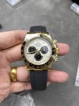 Daytona series, first-position time-setting watch, case molded from the original, dial size 40mm. The thickness is currently the closest to the original on the market. The solid ceramic bezel with tachymeter scale uses genuine ceramic technology, scratch-resistant and never fading, with identical texture and feel. The dial font and logo use an overprinting process, giving a slightly raised appearance when viewed from the side. The dial's background color and texture have undergone countless filters and corrections to ensure 100% matching the original. The metal logo is individually molded, with both three-dimensionality and roundness comparable to the original. Easy-to-read Coma Light luminous display with long-lasting luminous material. The flat sapphire crystal is scratch-resistant, with no double image, and perfectly matches the original. A small anti-counterfeiting crown is present at the 6 o'clock position. Note the details: the clasp is made of imported stainless steel parts, polished with a brushed finish, an inner corrosion-etched steel stamp, and an identical external safety ring