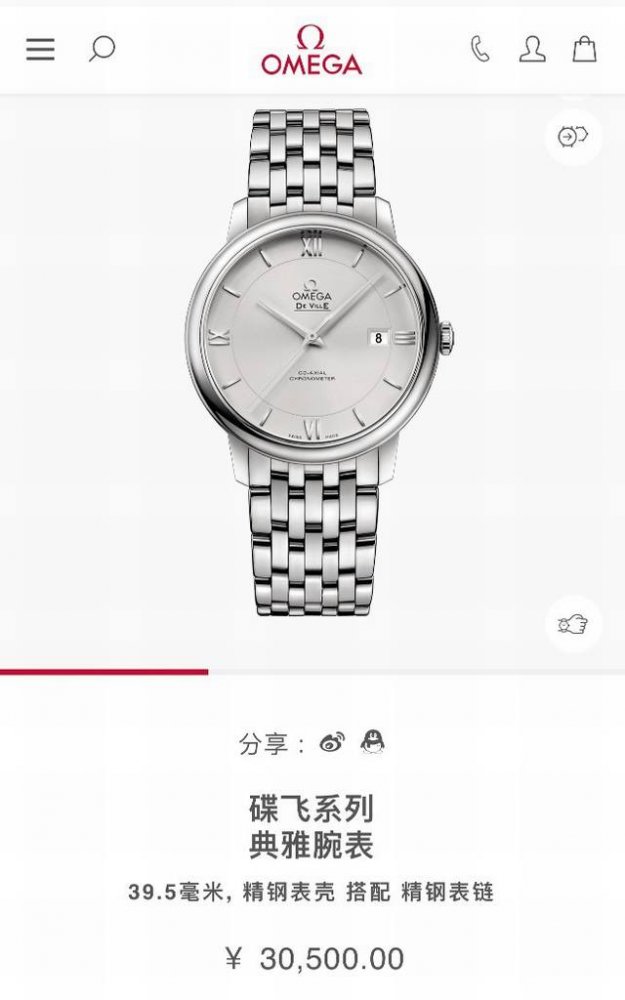 De Ville series elegant automatic mechanical watch. 39.5mm diameter, premium sta