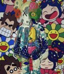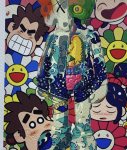 / Death Nyc Ukiyo-e Kaws Crayon Shin-chan Sunflower Limited Edition Painting, fram