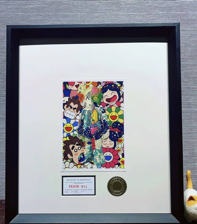 Death Nyc Ukiyo-e Kaws Crayon Shin-chan Sunflower Limited Edition Painting, framed, approx. 38*44cm, trendy home decor hanging painting.