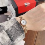 Exclusive New Arrival! Tissot's Cute Little Series Quartz Women's Watch. This series of watches is dazzling, showcasing elegance with its petite and luxurious feminine round case. The strap can be worn loosely as jewelry, allowing you to shine with captivating brilliance. This watch embodies the word "cute" while exuding irresistible charm. Available in full rose gold and pure steel. White mother-of-pearl dial with a serrated edge on the crystal, making it even more fashionable and trendy! 316L stainless steel bracelet, 19.5mm dial diameter, IP electric steel bracelet version in stock! Original Swiss Eta:901 1 movement, high quality, welcome to order! Full packaging included.