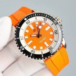 1: A dive watch must be both easy to read and convenient to operate. The maximum luminous coating on the hour markers and hands ensures clear readability in the dim light of the deep sea, like a small light bulb in the dark; convenience is achieved through a knurled ceramic bezel, a micro-zip folding clasp, and a precise mechanical movement paired with a scratch-resistant double-spherical sapphire crystal. 2. Geometric hands, clear and stylish. The hands of this watch showcase geometric charm to the fullest, a novel and harmonious combination that not only ensures clear readability but also leaves a lasting impression. 3. Listen to the sound, easy to operate. Those who appreciate mechanical watches are often captivated by the sound of winding and rotating the bezel. Listening to that distinct rhythm, one can more clearly feel the smooth operation of each component. The unidirectional rotating bezel and screw-down crown are meticulously crafted, allowing even those with long fingernails to operate them easily, and each interaction with the watch produces a crisp, pleasant mechanical sound. 4: Numerous choices, encourage bold experimentation. The Superocean series features a pure color scheme and attention to detail in its dial logo, bezel markings, and hour markers to highlight the vibrant dial colors. The multi-colored ceramic bezel paired with the colorful dial offers even more diverse options!