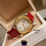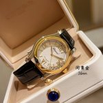 Happy Diamonds 36mm (Gold) DDD As Chopard's most popular and best-selling series, it interprets Chopard's iconic concept of the Happy Diamonds with a consistently delicate touch. This series is both beautiful and fashionable. The new Happy Diamonds features a curved bezel design with double-layered glass and rotating diamond beads that slide freely, allowing every woman to make a stunning entrance. DDD This time, we bring you one of Chopard's most representative women's watches. The most distinctive feature is the rotating diamonds in the double-layered glass, which seem to dance. This time, the diamond beads are the latest design, overflowing with brilliance, creating a smooth and flowing shape, perfectly embodying Chopard's interpretation of leisure style. DDD