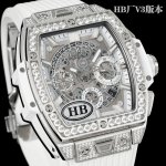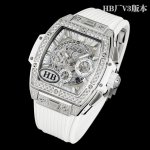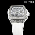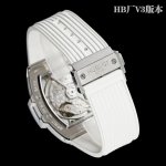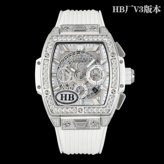 Hb factory's newly upgraded V3 version, one-piece quick-release detail, color matching the original, top-tier version on the market, new member, white, all colors arrived. Hublot Soul of the Big Bang series, model 642.Nx.0170.Rx. Inspired by racing, Hublot launches the new limited edition Spirit of the Big Bang! The watch combines all the iconic elements of the Spirit of the Big Bang series, with a new tonneau-shaped case. The case uses titanium and resin materials, using six H-shaped screws to construct a "sandwich" structure, conveying the concept of "fusion of technologies." It perfectly replicates the exclusive custom Hub4700 movement, original folding clasp, and custom fluoroelastomer strap. The watch features a "one-click" quick-change strap system; the wearer can easily and quickly change the strap with just a light press!
