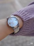 How could any girl miss such a beautiful Vivienne Westwood watch? I was amazed when I received the actual product! I think the icy blue dial is absolutely gorgeous! This is a four-season design, quite versatile. It makes my skin look brighter and adds to a girl's overall elegance. I feel the clear, light blue is perfect for spring and summer.