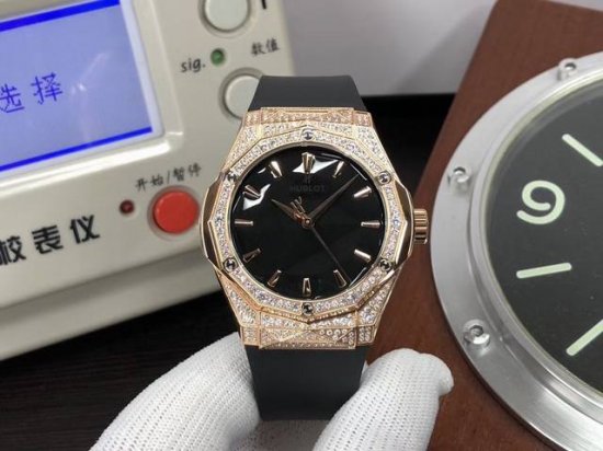 Hublot Classic Fusion 550.Os.1800.Rx.1604.Orl19 watch, hand-set diamond case, custom Cal.Hub 1110 automatic mechanical movement, sapphire crystal, natural rubber strap, folding clasp, 40mm size. DDD