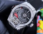 Hublot Warcraft MP Series 909.Nx.1120.Rx.1704 Polished metal case, hand-set with 207 zircon stones, anodized red aluminum lower structure with 6 H-shaped metal screws, equipped with original imported mechanical movement. Hublot's Warcraft masterpiece MP-09 dual-axis tourbillon watch. Hublot's first multi-axis tourbillon watch brings a new perspective. Size 45mm, rubber strap with original buckle. Strong futuristic technology feel, unprecedented design brings you visual impact.
