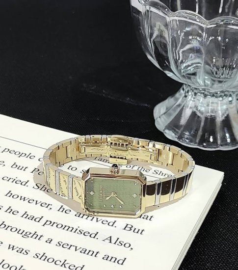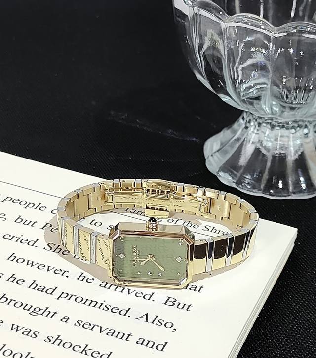 In the sweltering summer, outfits really need to feel cool! And green is my ultimate cooling weapon! I've taken out my Lola Rose Sugar Cube Green Watch again this spring! The green agate gemstone dial contrasts beautifully with the gold, like morning light shining on leaves. It sparkles with tiny sparkles from every angle. It's a low-saturation matcha green.