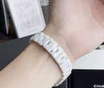 I've been getting so many questions about it since I started wearing it! The ceramic strap fits snugly on the wrist and isn't stuffy or sweaty in the summer. The white dial with rhinestones looks elegant with anything, from work to dates. I've worn it for over half a year, and it hasn't scratched at all from washing my hands