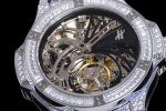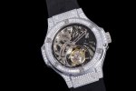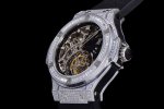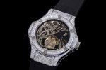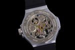 Jb Factory's best-selling Hublot V3 upgraded version Hb1 features the following upgrades: The case is molded using the original casing, the lugs are no longer made of plastic, and it's equipped with an upgraded genuine tourbillon movement for enhanced shock resistance. This addresses the issues of poor stitching and high movement repair rates found in ordinary versions on the market. It boasts a 90% replica of the original structure, a 1:1 size, a laminated sapphire crystal, and a synchronized rubber-backed leather strap, further highlighting its superior quality compared to smaller factories. The key selling points can be summarized as "six high elements": 1. High-precision genuine tourbillon movement, high-end and stable. 2. High-stitching: The bezel, case, and case back are seamlessly joined; the upgraded lugs use steel construction, unlike the plastic ones on the market! 3. High replication: 90% replica of the original structure, 1:1 size. 4. High shock resistance: Enhanced shock resistance, a breakthrough in technology, resulting in an extremely low repair rate! 5. The high-strength lens uses scratch-resistant sapphire crystal and polyethylene explosion-proof film, which can withstand strong impacts; 6. The high-value and cool appearance is full of style, and the fully skeletonized movement is full of mechanical feel! The
