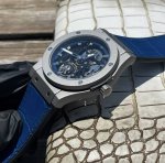 Latest: Hublot's latest minimalist design. Type: Premium Men's Watch. Strap: Malaysian styrax strap. Movement: High-end automatic mechanical movement. Crystal: Mineral-reinforced glass for a clearer view. Elegant and sophisticated, a masterpiece on the wrist. Size: 45mm diameter, 12mm thickness.