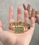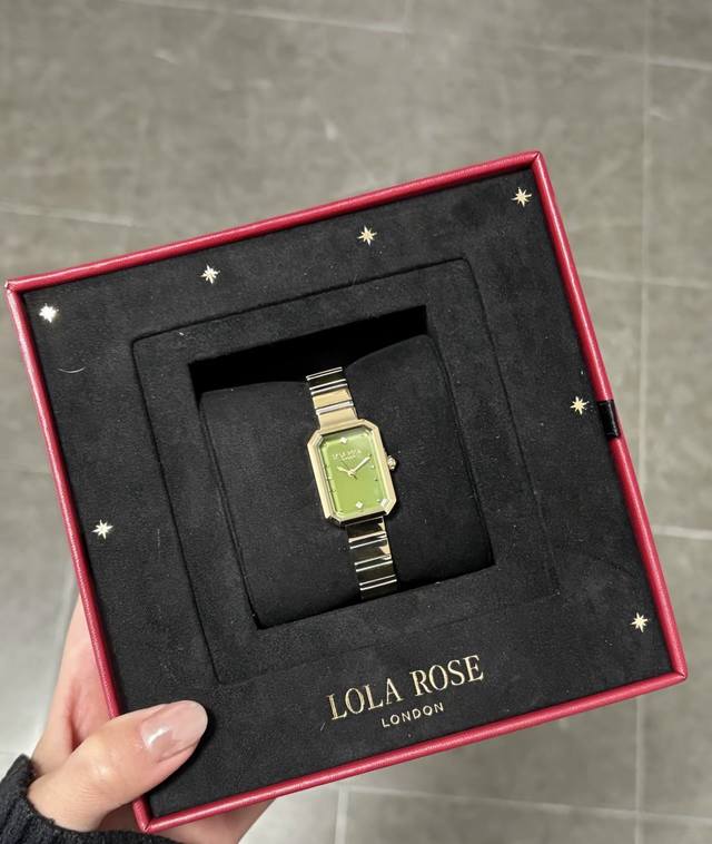Lola Rose Sugar Cube Green Watch, a new luxury watch with a unique and sophisticated feel! Available in four new colors: Green Agate, Peacock Green, Jade Pink, and Black Sandstone!! Lola Rose reinterprets its classic design with a fresh look. The designer captured the delicate green hue of early spring, infusing the dial with a fresh and vibrant feel. Paired with unique sparkling hour markers and a gold and silver strap, it's like a sugar cube adding a touch of color to your wrist, exploring multifaceted beauty beyond classic design! Model Lr4708, imported Japanese quartz movement, 25M19M size, octagonal faceted design, gem-like durability and clarity, paired with a bright gold case, a gold-silver-silver strap, and a delicate butterfly clasp for easy removal! Comes with complete matching packaging !