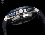 3. The movement uses Dandong 7750 6 small seconds modified Calibre 4401 with a larger plate for better aesthetics and more stable quality. 4. The case is made of Japanese 316 stainless steel, giving it a brighter appearance compared to the common 306 steel used in the market. 5. The bezel is made of imported Korean ceramic, available in black, blue, and green. The ceramic bezel is fitted with sapphire crystal. 6. The strap is made of imported fluoroelastomer, making it more comfortable and better to wear. The leather strap is made of top-grain cowhide, and the cloth strap is made of leather-wrapped fabric, not pressed leather. 7. The dial has been upgraded. The dial texture is CNC slow-washed, not oil-pressed, resulting in a clear finish. The iconic squares are now connected by crosses.