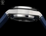 3. The movement uses Dandong 7750 6 small seconds modified Calibre 4401 with a larger plate for better aesthetics and more stable quality. 4. The case is made of Japanese 316 stainless steel, giving it a brighter appearance compared to the common 306 steel used in the market. 5. The bezel is made of imported Korean ceramic, available in black, blue, and green. The ceramic bezel is fitted with sapphire crystal. 6. The strap is made of imported fluoroelastomer, making it more comfortable and better to wear. The leather strap is made of top-grain cowhide, and the cloth strap is made of leather-wrapped fabric, not pressed leather. 7. The dial has been upgraded. The dial texture is CNC slow-washed, not oil-pressed, resulting in a clear finish. The iconic squares are now connected by crosses.