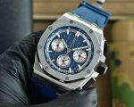 Ls .Factory Audemars Piguet Royal Oak Offshore 26420 New Upgraded Version DDD 1. Newly molded 43mm case, market version 44mm, using the old 26400 case with a completely new design, more ergonomic case, and more refined case details. It has larger polished chamfers, and the size is 43mm~15.6mm. The 43mm wide case has been carefully modified to accommodate the slightly larger diameter new movement DDD 2. Date upgrade, through the modification of the movement, the date window has been pushed to the edge of the dial, and the hands have also been slightly modified. DDD 3. The movement uses Dandong 7750 6 small seconds modified Calibre 4401 with a larger plate for better aesthetics and more stable quality. 4. The case is made of Japanese 316 stainless steel, giving it a brighter appearance compared to the common 306 steel used in the market. 5. The bezel is made of imported Korean ceramic, available in black, blue, and green. The ceramic bezel is encased in sapphire crystal. 6. The strap is made of imported fluoroelastomer, providing a more comfortable and better feel. The leather strap is made of top-grain cowhide, while the cloth strap is made of leather-wrapped fabric, not pressed leather. 7. The dial has been upgraded with a CNC slow-wash finish instead of oil-pressed, resulting in a clear finish. The iconic squares are now connected by crosses.