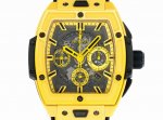Inspired by racing, the new Spirit Of Big Bang limited edition wristwatch is launched! The watch combines all the iconic elements of the Spirit Of Big Bang series, with a new tonneau-shaped all-ceramic case. The case uses titanium and resin materials, and uses six H-shaped screws to build a "sandwich" structure, conveying the concept of "fusion of technologies". It perfectly replicates the exclusive custom Hub4700 movement, original folding clasp, and custom fluoroelastomer strap. The watch is equipped with a "one-click" quick strap changing system, and the wearer can easily and quickly change the strap with just a light press! A refined recommendation for men's multi-functional mechanical watches