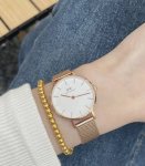 My best friend gave me this dream watch! Dw DDD The moment I received it, I screamed because it's so incredibly beautiful!! DDD Thank you to my stunningly beautiful friend. It makes my hands look even prettier! DDD The watch's full name is the Dw Moonlight White Gold Watch. The white dial and gold strap create a very sophisticated color scheme. It also came with a limited-edition pink Dw 520 jewelry box, which is gorgeous, has two layers, and plenty of space, so I didn't need to buy one separately, hehe~ DDD I see who hasn't tagged their best friend to receive one yet! DDD