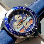 New and stylish! Tagheuer F1 Gulf Special Edition Quartz Men's Watch, original quality! Six-hand chronograph with date display! Swiss-made quartz movement! Genuine leather strap and case, sapphire crystal! Retail price over 10,000 RMB! ~43mm case diameter! Comes with full original packaging!