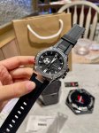 New Casio Gst-B100 series watch release: Made of metal resin with mineral-strengthened glass, the case measures 58.1mm in diameter, 53.8mm in width, and 14.1mm in thickness. It features a three-hand, three-register dial with three hands, a new turbine-style rotor at 9 o'clock, and wave-patterned, openworked finishes that exude mature masculine charm. Features include shock resistance, a second time function, high-brightness LED illumination, automatic calendar, countdown timer, power indicator, power-saving function, 24- hour time format, stopwatch function (-1 hour), and alarm. Comes with full packaging.